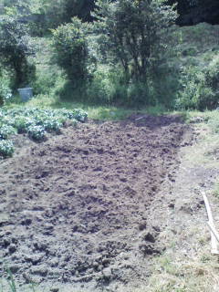 畝を5つ作る。4つは,じゃがいも、1つは,ニンニク